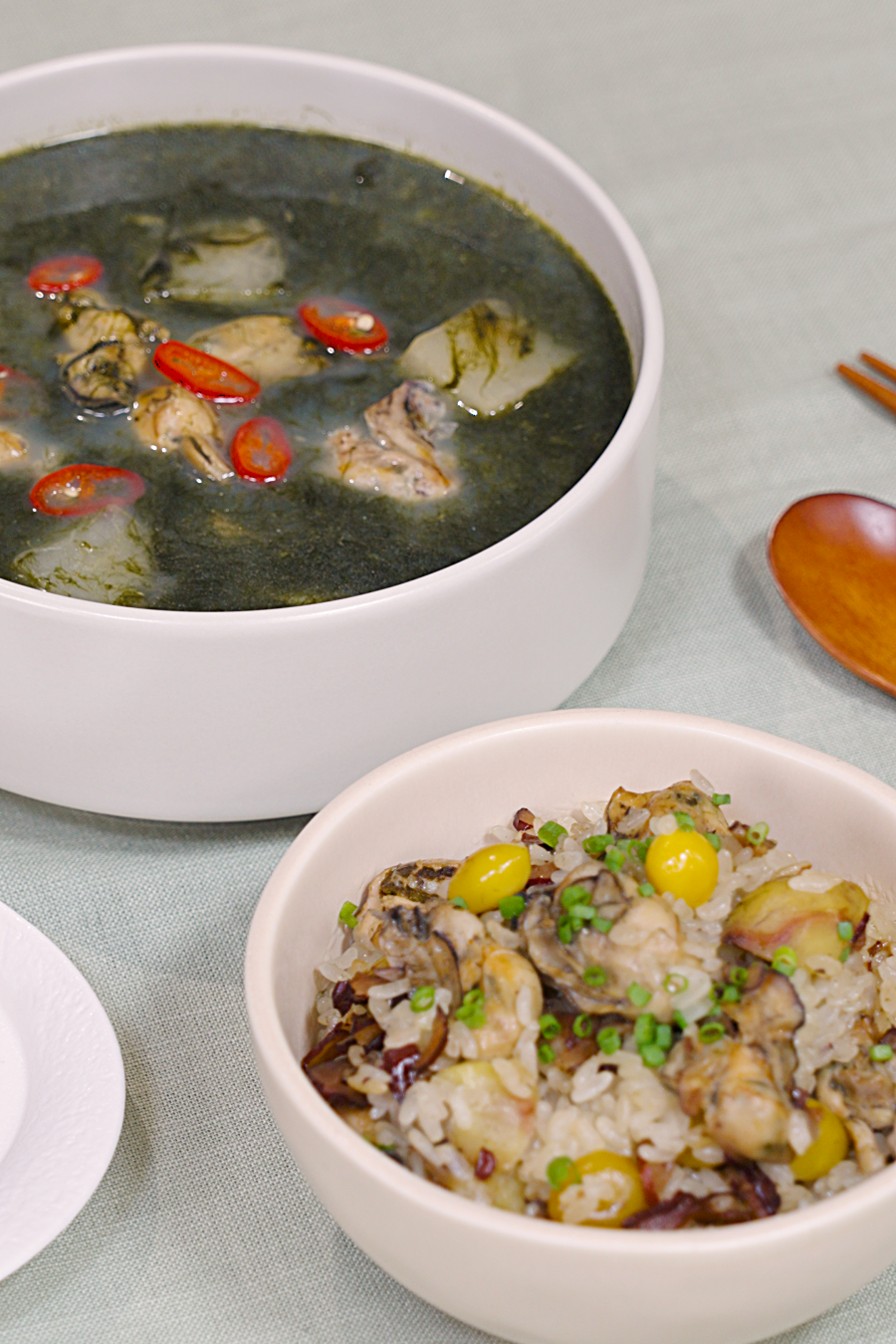 매생이 굴 국과 찰밥