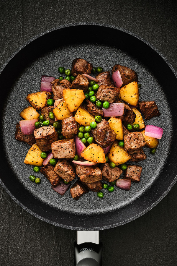 - 채끝은 한 입 크기로 썰어 고기 마리네이드 재료에 버무려 약 10분간 재운다.
