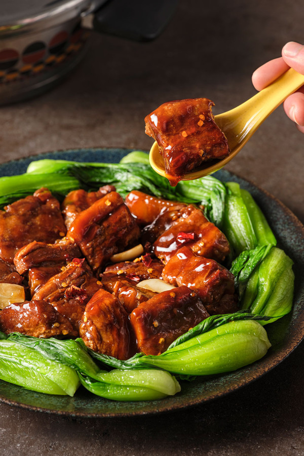 - 압력계기가 내려가면 뚜껑을 열고 송송 썬 쪽파를 올려 완성한다.